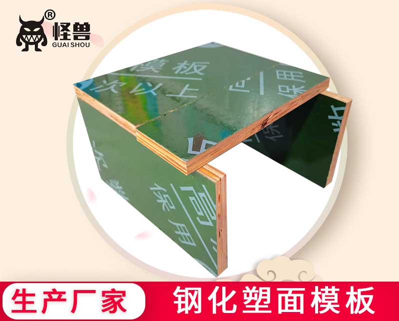 怪獸木業有限公司研發生產塑面模板,采用鋼化塑面模板技術生產的覆塑建筑模板、土豪金鋼化膜塑面建筑模板保用周轉33次。